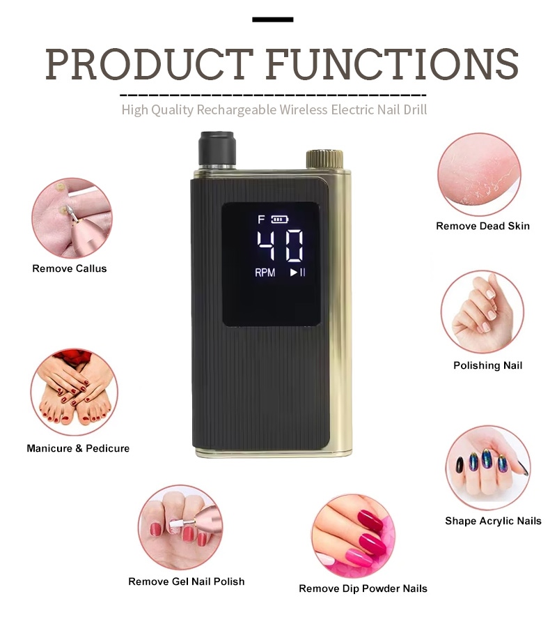 Χαρακτηριστικό και εφαρμογή του επαγγελματικού τρυπανιού νυχιών υψηλής ταχύτητας 40.000 RPM