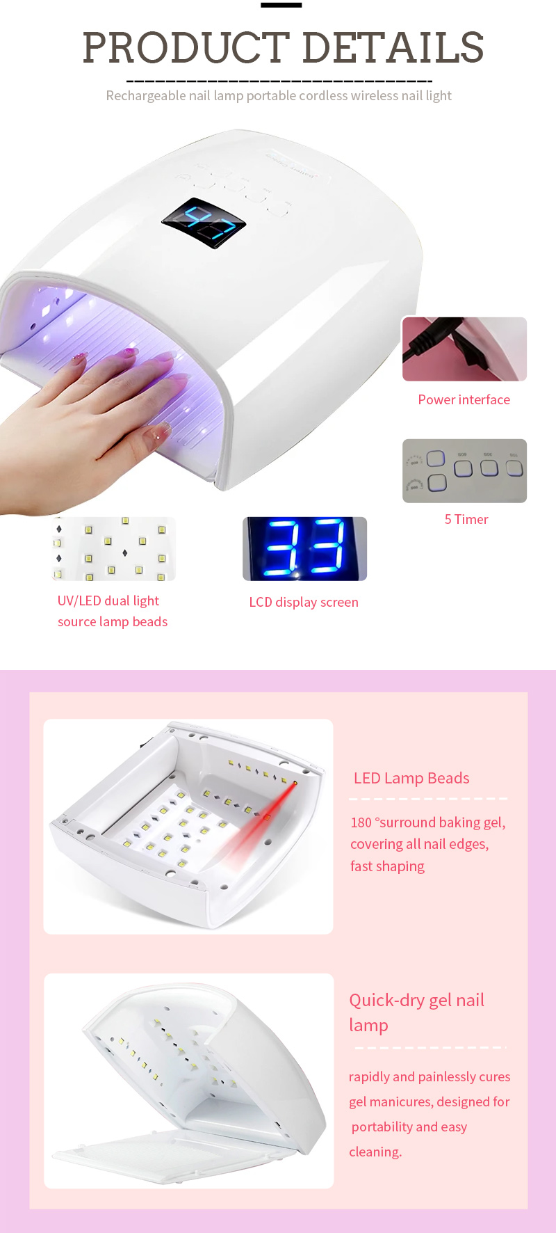 Το προϊόν εξασφαλίζει ομοιόμορφο στέγνωμα της κόλλας χωρίς συρρίκνωση. Οι διπλές πηγές φωτός του παρέχουν απαλή θέρμανση για να αποτρέψουν τον αποχρωματισμό των χεριών και την καταπόνηση των ματιών, κατάλληλες τόσο για χέρια όσο και για πόδια, προσφέροντας εξαιρετικά γρήγορα αποτελέσματα στεγνώματος.