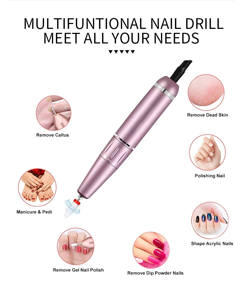 Φορητό Σετ τρυπάνια νυχιών Ηλεκτρικό Με Ισχυρό Μοτέρ 65w 35000rpm