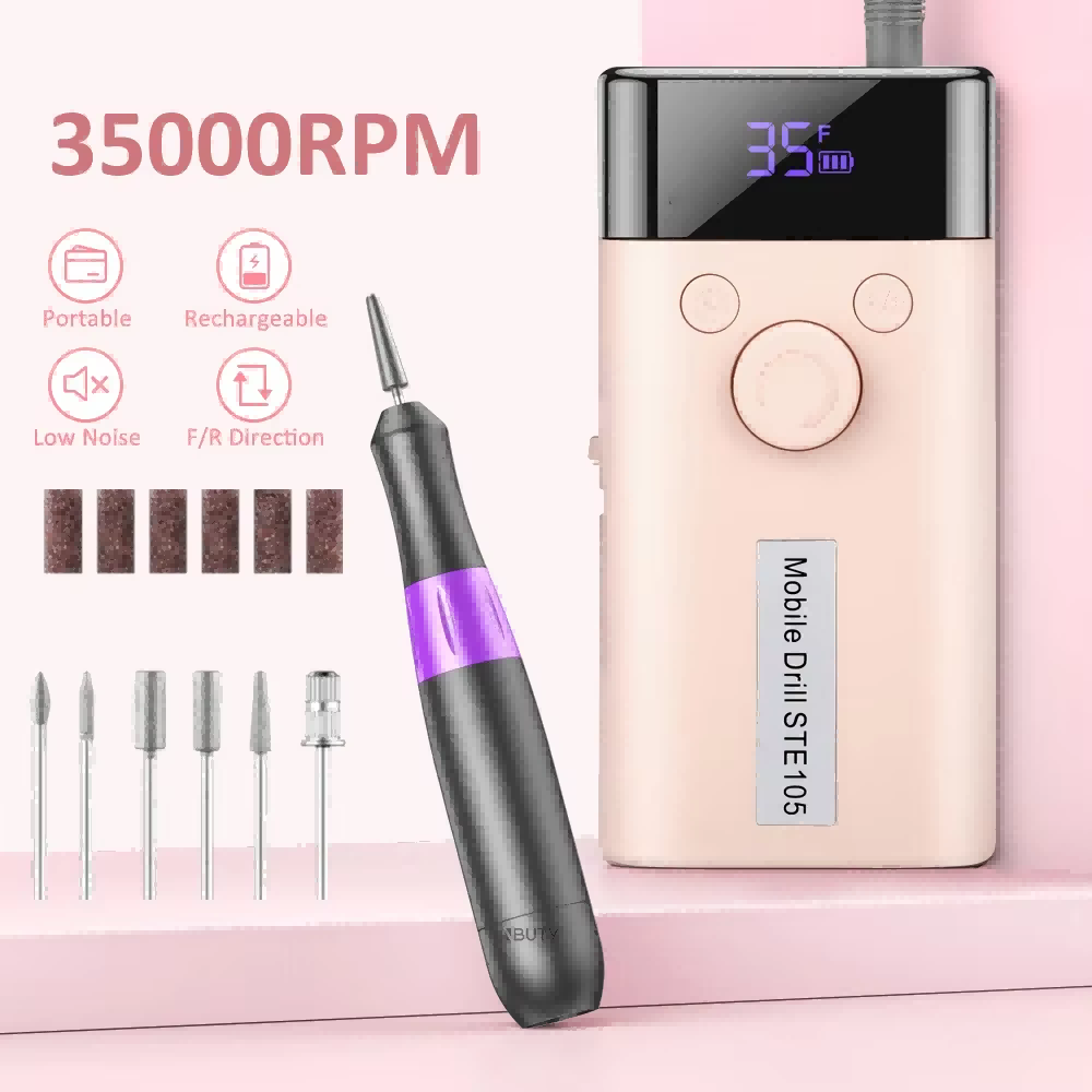 Φορητό Σετ τρυπάνια νυχιών Ηλεκτρικό Με Ισχυρό Μοτέρ 65w 35000rpm