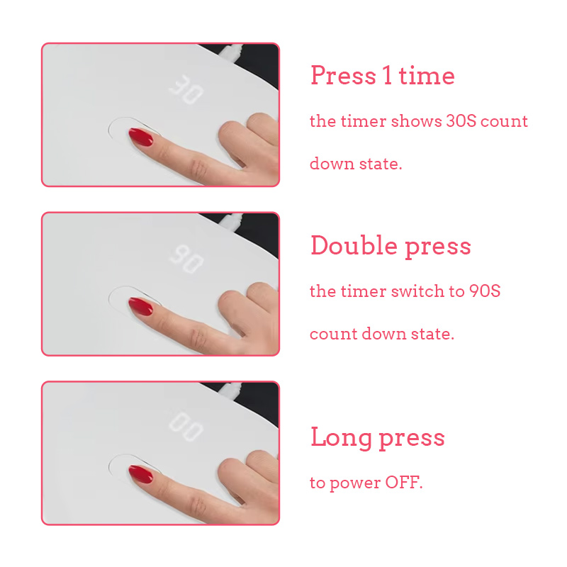 Η αναδιπλούμενη μίνι λάμπα στεγνώματος νυχιών διαθέτει τεχνολογία υπέρυθρης έξυπνης ανίχνευσης που ανάβει αυτόματα όταν τα χέρια πλησιάζουν και σβήνει όταν τα χέρια απομακρύνονται—εξαλείφοντας την ταλαιπωρία του επανειλημμένου πατήματος κουμπιών και εξοικονομώντας χρόνο και προσπάθεια. Η κόλλα ψησίματος υψηλής ισχύος δεν απαιτεί μεγάλη αναμονή, εξοικονομώντας χρόνο και προσπάθεια.