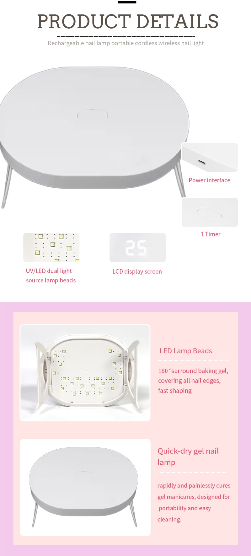 Λεπτομέρειες αναδιπλούμενης μίνι λάμπας στεγνώματος νυχιών