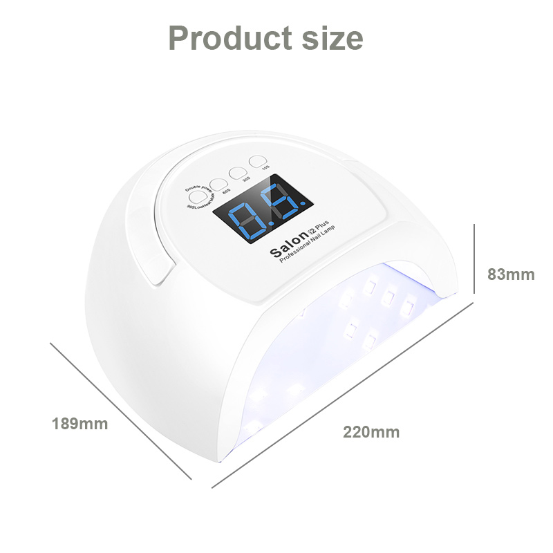 Το προϊόν εξασφαλίζει ομοιόμορφο στέγνωμα της κόλλας χωρίς συρρίκνωση. Οι διπλές πηγές φωτός του παρέχουν απαλή θέρμανση για να αποτρέψουν τον αποχρωματισμό των χεριών και την καταπόνηση των ματιών, κατάλληλες τόσο για χέρια όσο και για πόδια, προσφέροντας εξαιρετικά γρήγορα αποτελέσματα στεγνώματος.