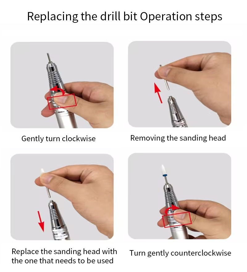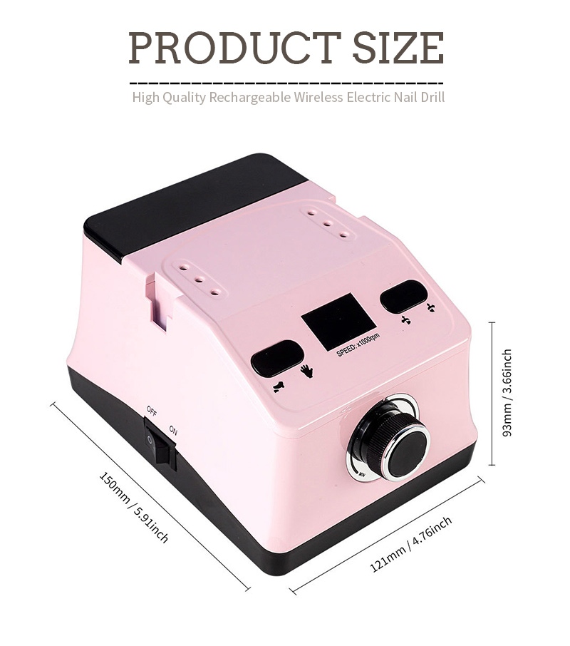 Ο σχεδιασμός της οθόνης αυτού του φορητού τρυπανιού και στιλβωτικού νυχιών διαθέτει διακόπτη on/off και περιστροφή προς τα εμπρός/πίσω για συνολική ενεργοποίηση με ένα κουμπί, μια υποδοχή γρήγορης φόρτισης στο κάτω μέρος, μια αντικαταστάσιμη υποδοχή τρυπανιού στο επάνω μέρος και μια ρυθμιζόμενη ταχύτητα τριών θέσεων για την κάλυψη ποικίλων αναγκών.