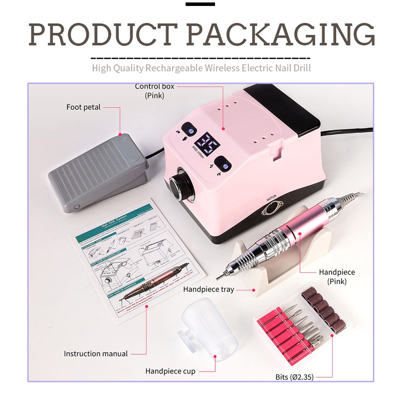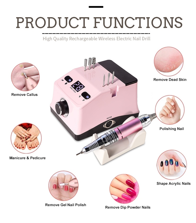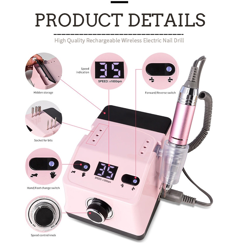Φορητό Σετ τρυπάνια νυχιών Ηλεκτρικό Με Ισχυρό Μοτέρ 65w 35000rpm