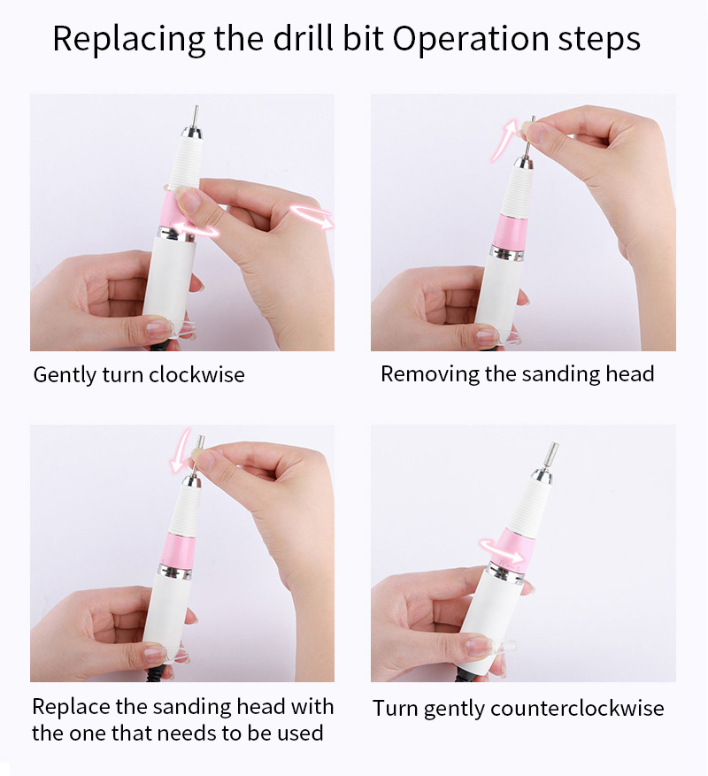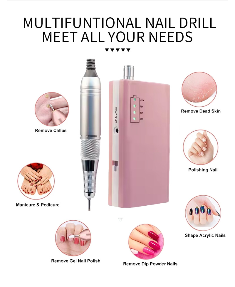 Φορητό Σετ τρυπάνια νυχιών Ηλεκτρικό Με Ισχυρό Μοτέρ 65w 35000rpm