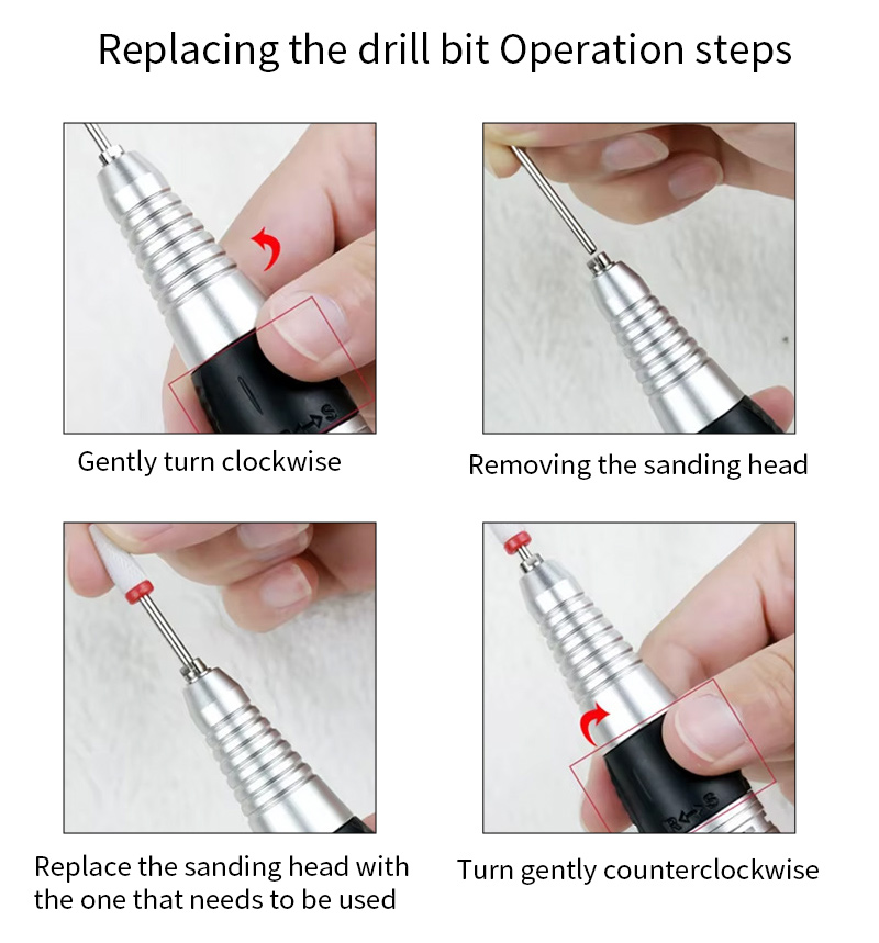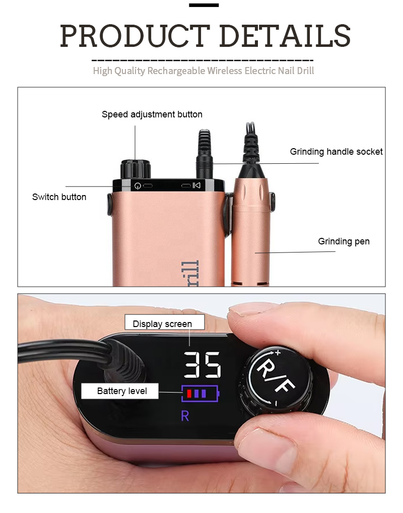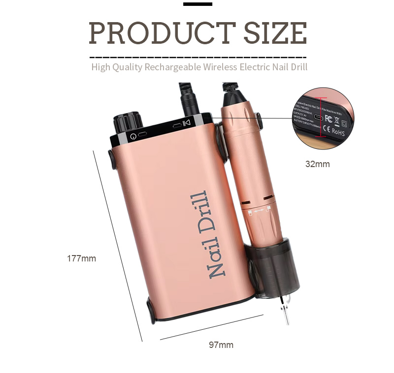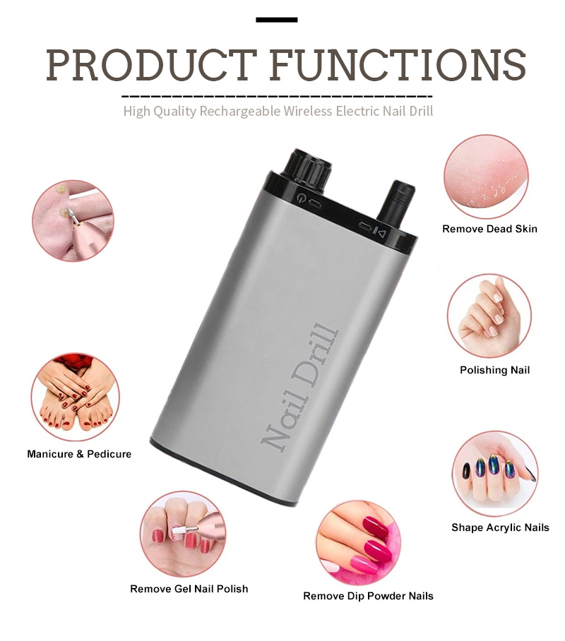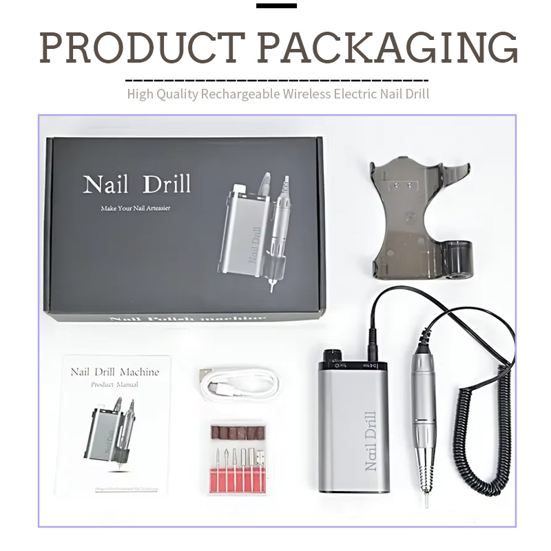 Φορητό Σετ τρυπάνια νυχιών Ηλεκτρικό Με Ισχυρό Μοτέρ 65w 35000rpm