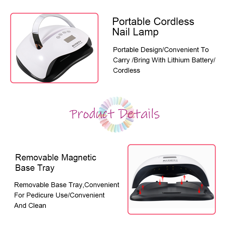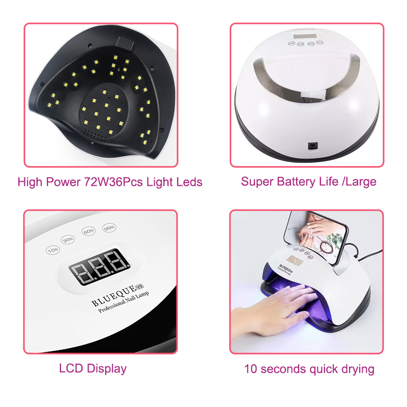 Η υψηλής ποιότητας λάμπα νυχιών με λειτουργία χρονοδιακόπτη εξασφαλίζει ομοιόμορφο στέγνωμα της κόλλας χωρίς συρρίκνωση. Οι διπλές πηγές φωτός του παρέχουν απαλή θέρμανση για να αποτρέψουν τον αποχρωματισμό των χεριών και την καταπόνηση των ματιών, κατάλληλες τόσο για χέρια όσο και για πόδια, προσφέροντας εξαιρετικά γρήγορα αποτελέσματα στεγνώματος.