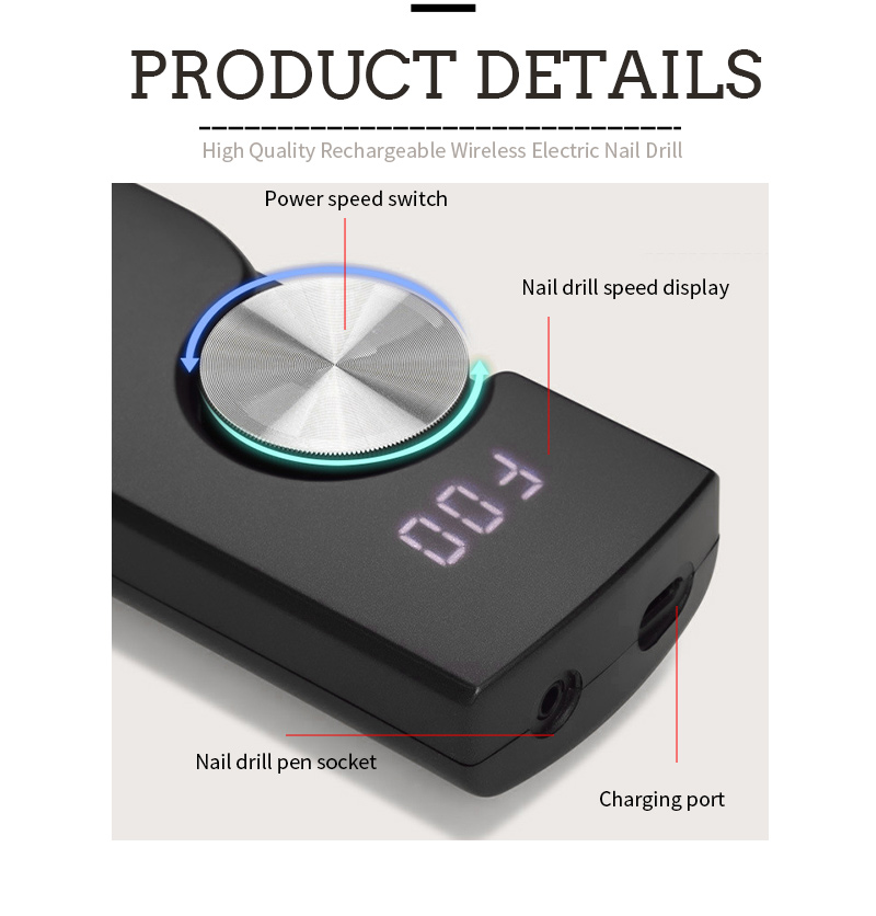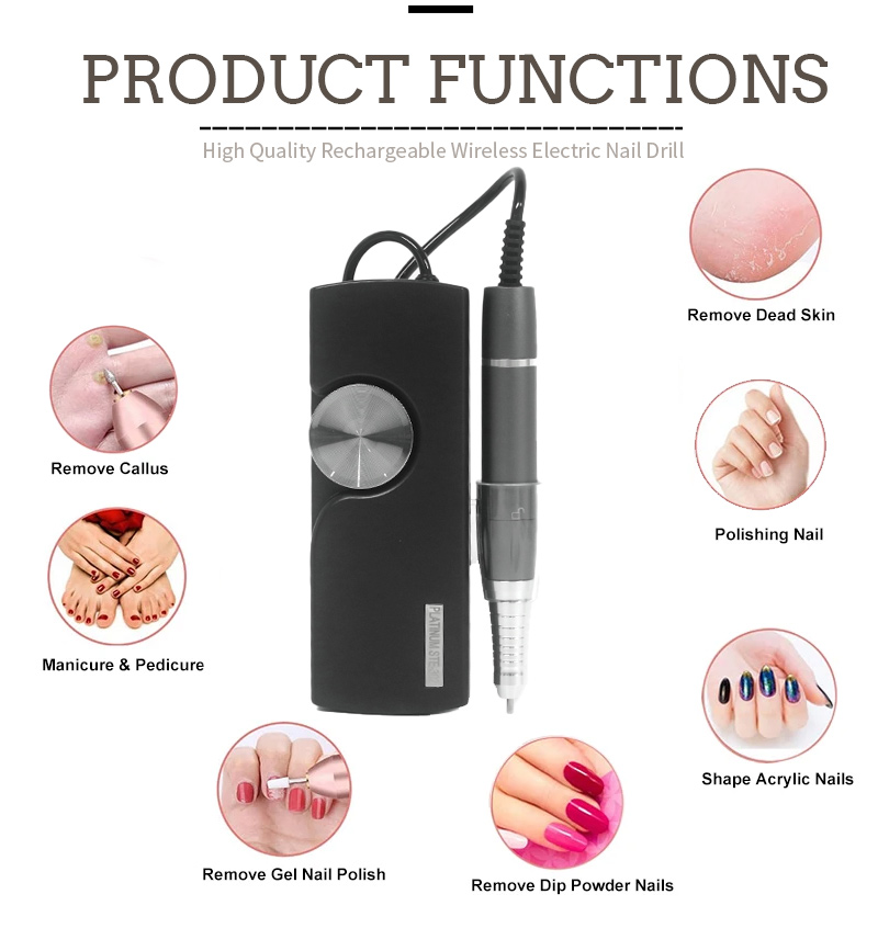 Αυτή η μηχανή τρυπανιών νυχιών είναι πολύ φορητή και πολύ εύκολη στη χρήση. Μπορείτε να συνειδητοποιήσετε τι θέλετε πιέζοντας ή περιστρέφοντας τον κύριο ελεγκτή.