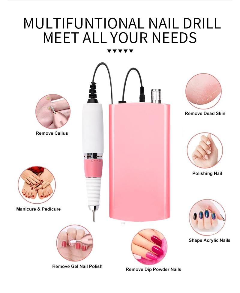 Φορητό Σετ τρυπάνια νυχιών Ηλεκτρικό Με Ισχυρό Μοτέρ 65w 35000rpm