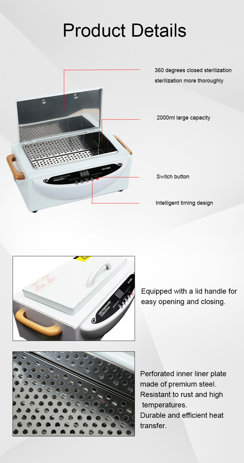 Αυτός ο αποστειρωτής παράγει κυρίως θερμότητα μέσω ενός δακτυλίου θέρμανσης, χρησιμοποιώντας υψηλές θερμοκρασίες για απολύμανση.