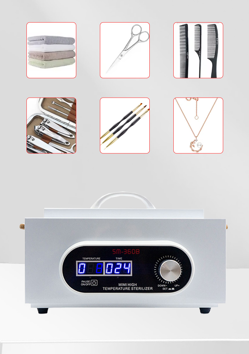 Αυτός ο αποστειρωτής παράγει κυρίως θερμότητα μέσω ενός δακτυλίου θέρμανσης, χρησιμοποιώντας υψηλές θερμοκρασίες για απολύμανση.