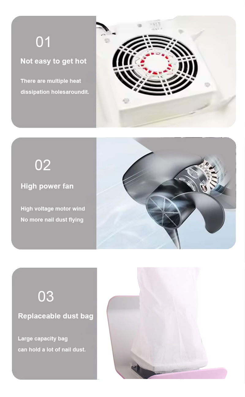 Τα προϊόντα ισχυρή προσρόφηση των υπολειμμάτων νυχιών δεν διαρρέουν σκόνη, διατηρούν τον πάγκο καθαρό και τακτοποιημένο, το γρήγορο κενό δεν διαρρέει σκόνη υψηλής ισχύος πιο αποτελεσματική.
