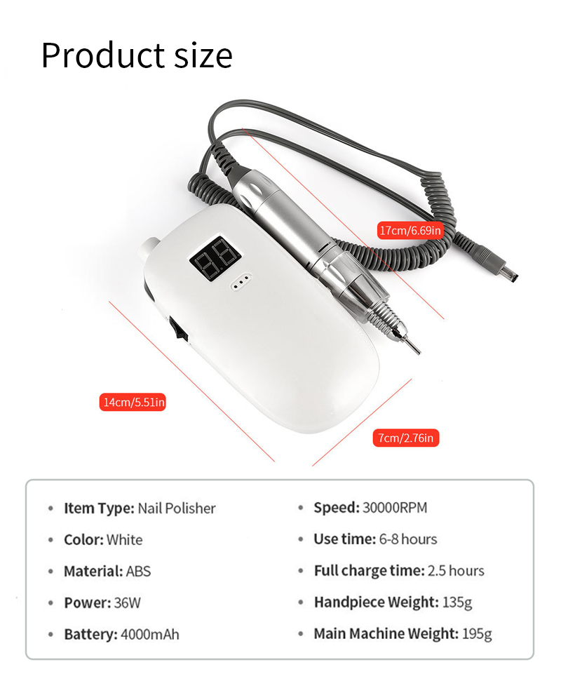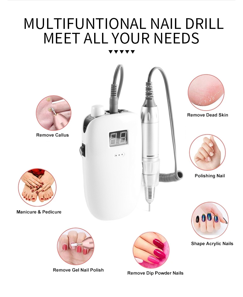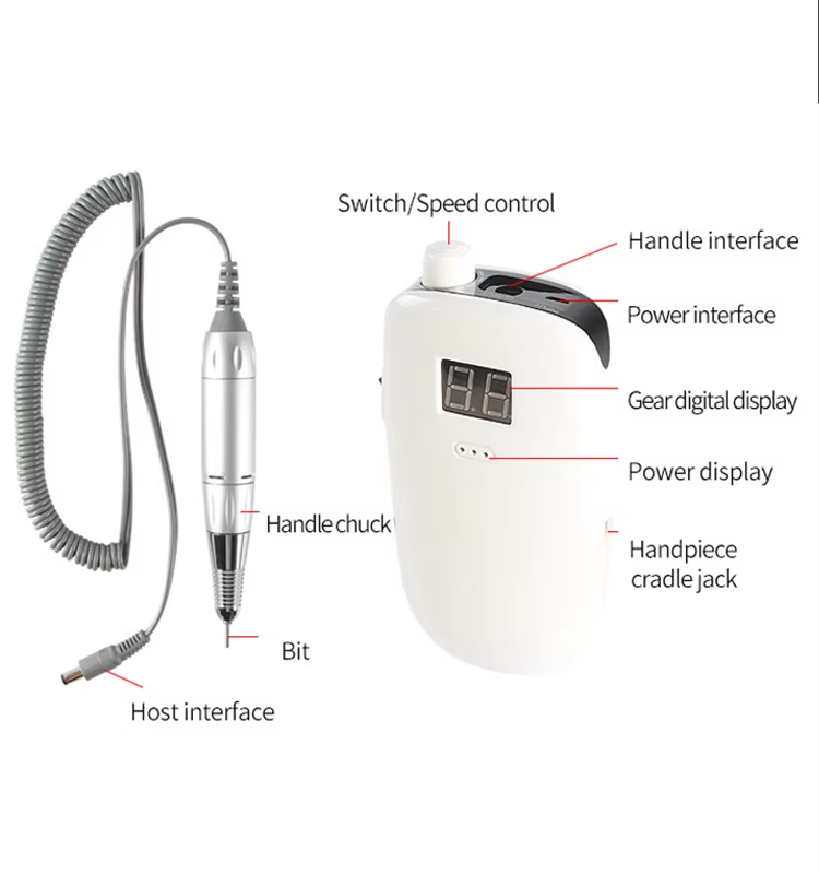 Φορητό Σετ τρυπάνια νυχιών Ηλεκτρικό Με Ισχυρό Μοτέρ 65w 35000rpm