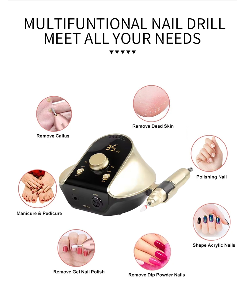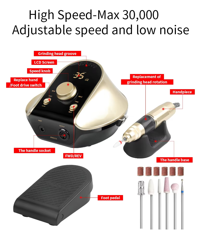 Φορητό Σετ τρυπάνια νυχιών Ηλεκτρικό Με Ισχυρό Μοτέρ 65w 35000rpm