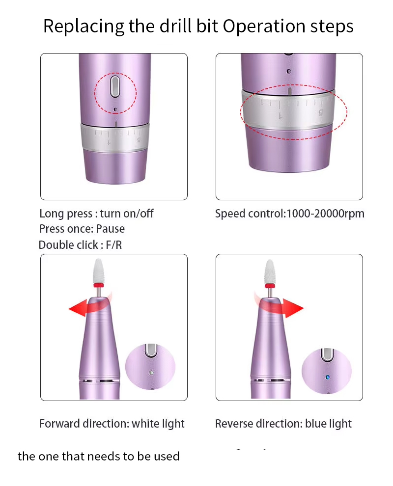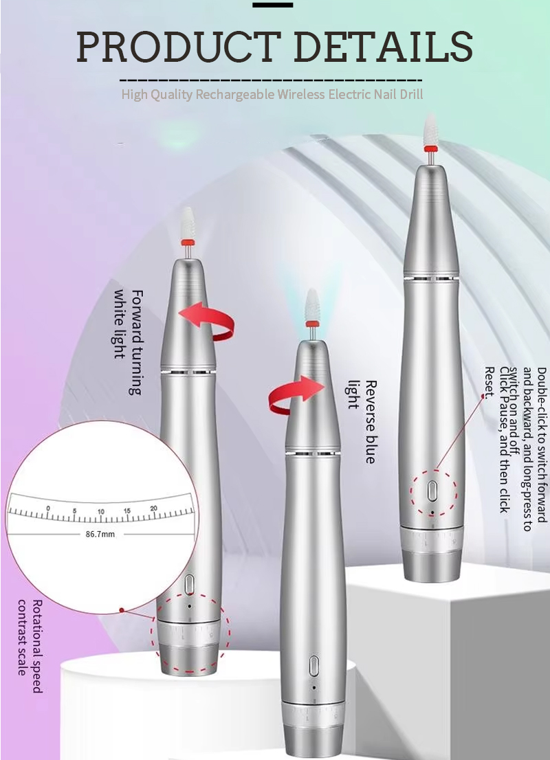 Φορητό Σετ τρυπάνια νυχιών Ηλεκτρικό Με Ισχυρό Μοτέρ 65w 35000rpm