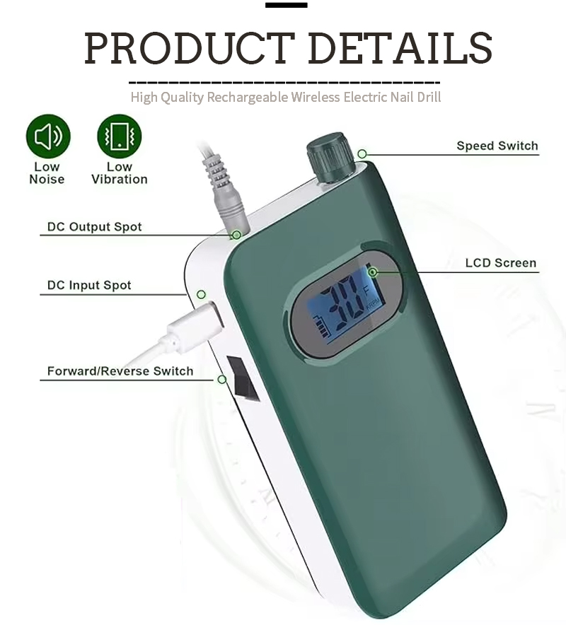 Φορητό Σετ τρυπάνια νυχιών Ηλεκτρικό Με Ισχυρό Μοτέρ 65w 35000rpm