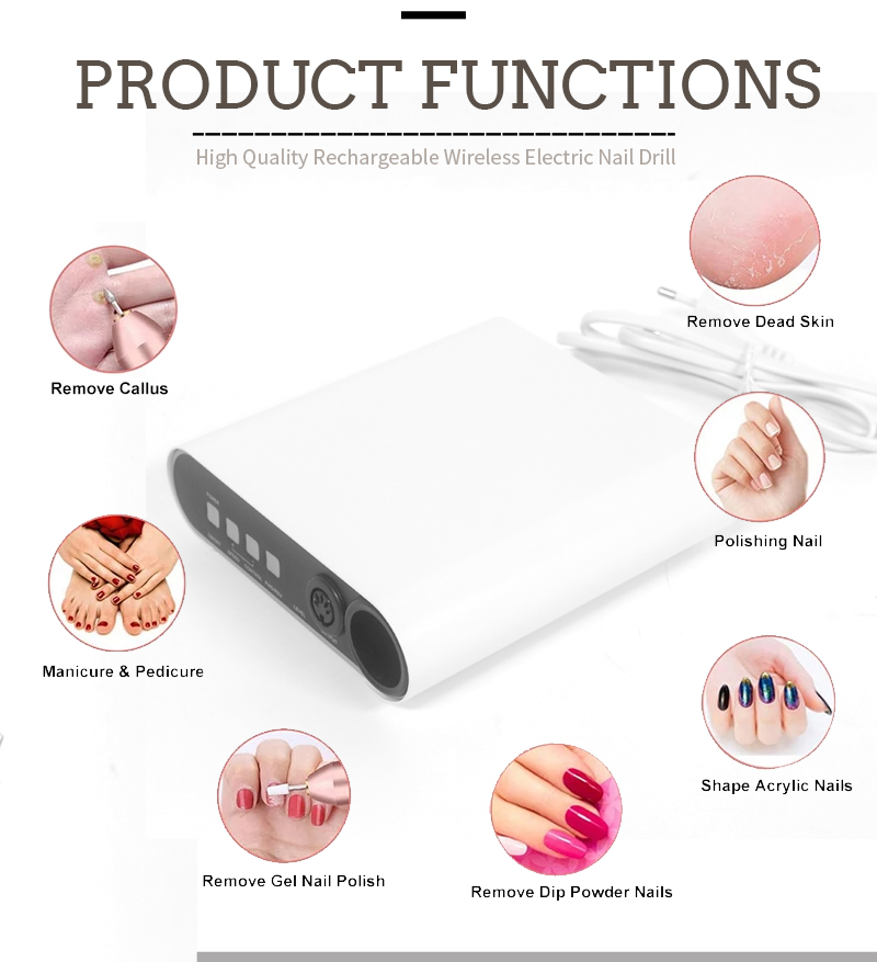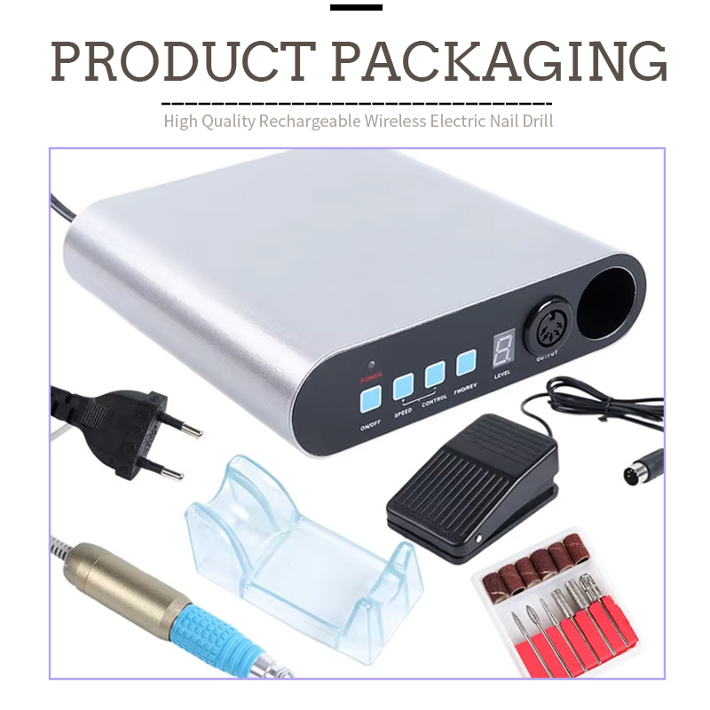 Φορητό Σετ τρυπάνια νυχιών Ηλεκτρικό Με Ισχυρό Μοτέρ 65w 35000rpm