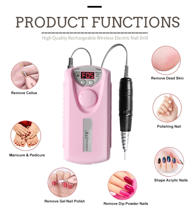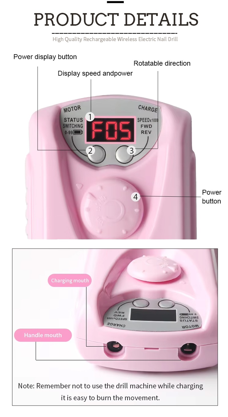 | Επαγγελματικό ασύρματο ηλεκτρικό τρυπάνι νυχιών Λεπτομέρειες |