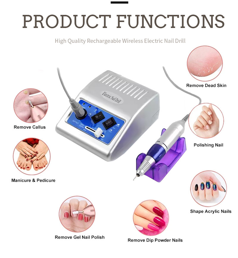 Φορητό Σετ τρυπάνια νυχιών Ηλεκτρικό Με Ισχυρό Μοτέρ 65w 35000rpm
