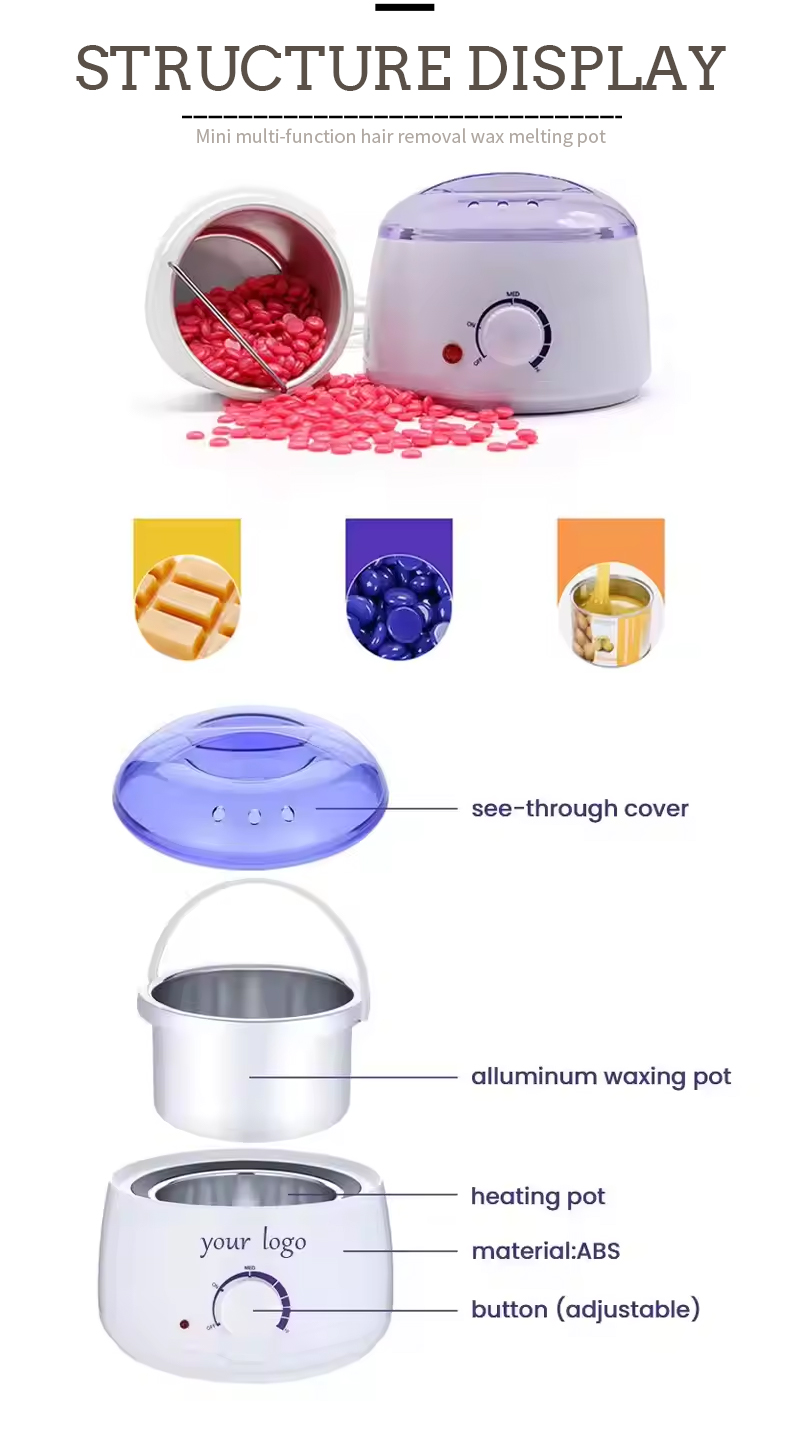 - Κατάλληλο για όλους τους τύπους κεριών: Σκληρή αποτρίχωση, αποτρίχωση με ταινίες, αποτρίχωση με παραφίνη
