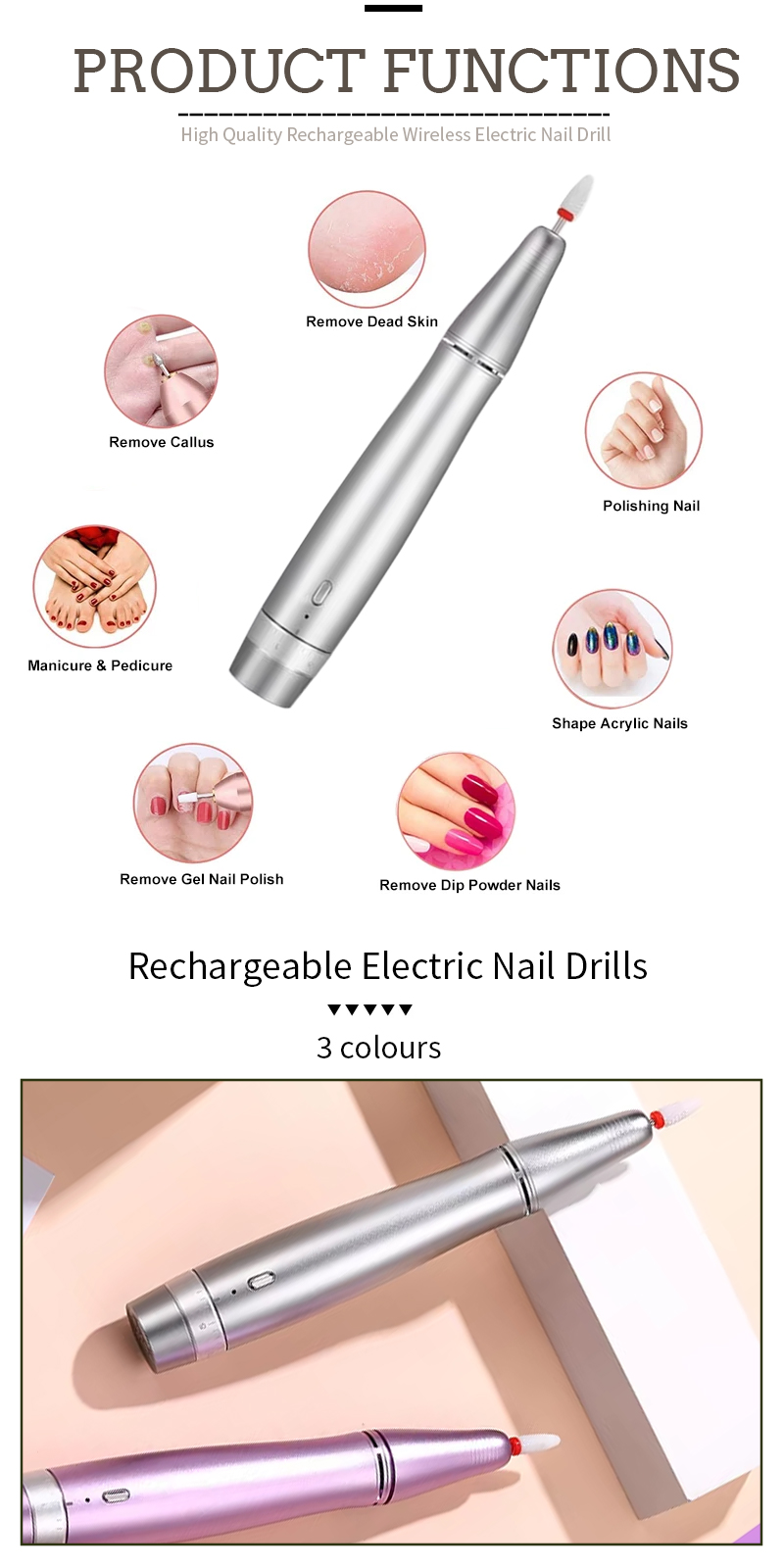 Φορητό Σετ τρυπάνια νυχιών Ηλεκτρικό Με Ισχυρό Μοτέρ 65w 35000rpm