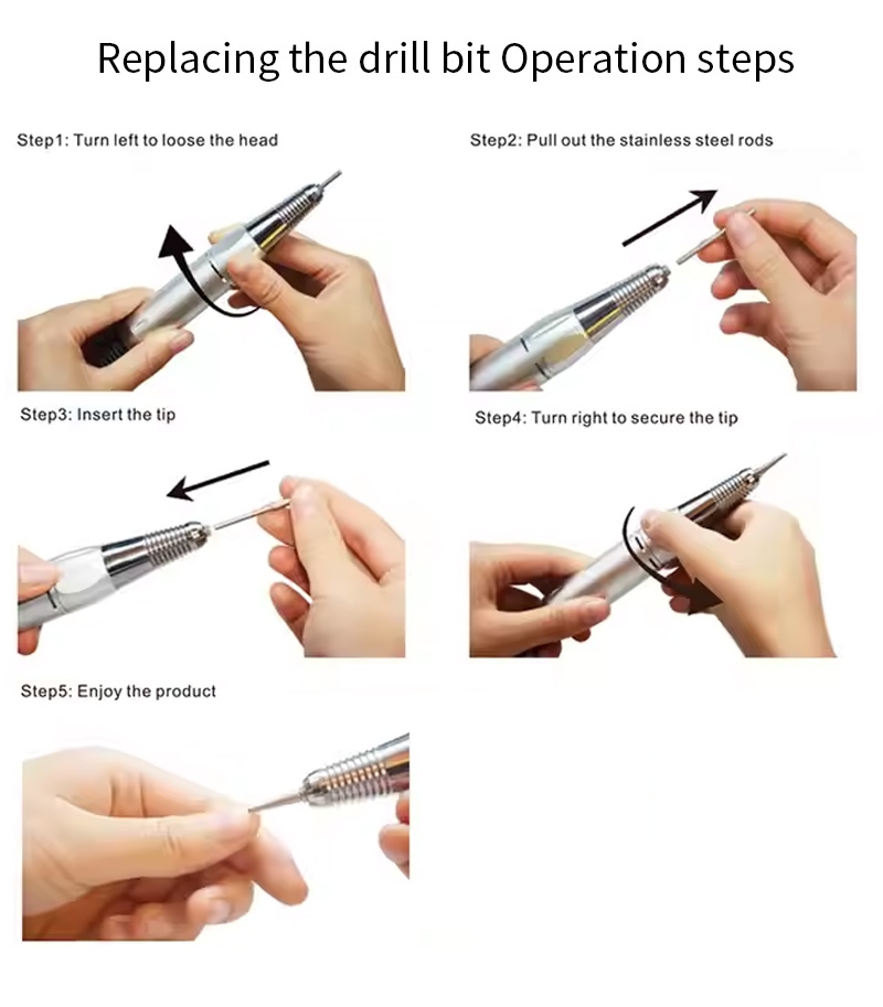 Φορητό Σετ τρυπάνια νυχιών Ηλεκτρικό Με Ισχυρό Μοτέρ 65w 35000rpm