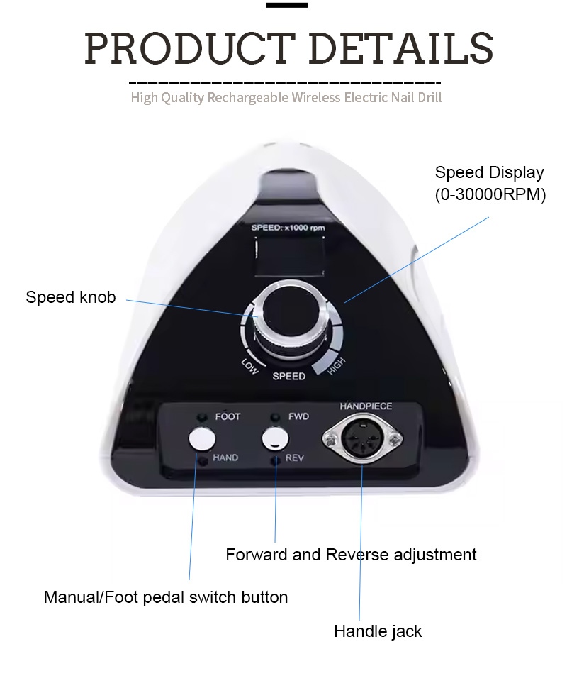 | Επαγγελματικό φορητό τρυπάνι νυχιών 35.000 RPM Επισκόπηση |