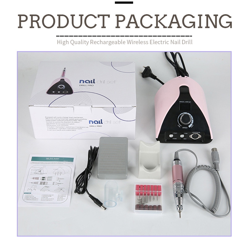 Το περιεχόμενο αυτής της επαγγελματικής φορητής μηχανής τρυπάνι νυχιών συσκευασίας 35.000 στροφών έχει ένα προϊόν στυλό λείανσης, ένα καλώδιο φόρτισης USB, ένα εγχειρίδιο οδηγιών προϊόντος και ένα ελαφρύ και φορητό κουτί.