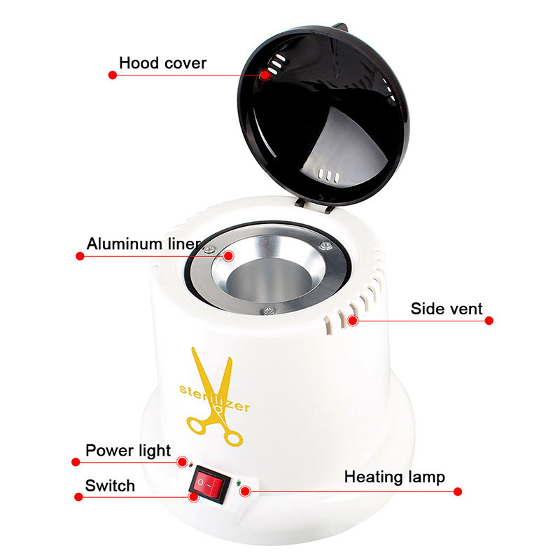 Αυτός ο αποστειρωτής παράγει κυρίως θερμότητα μέσω ενός δακτυλίου θέρμανσης, χρησιμοποιώντας υψηλές θερμοκρασίες για απολύμανση.