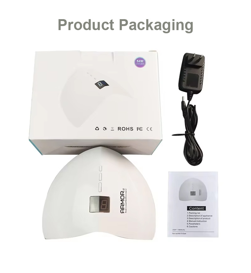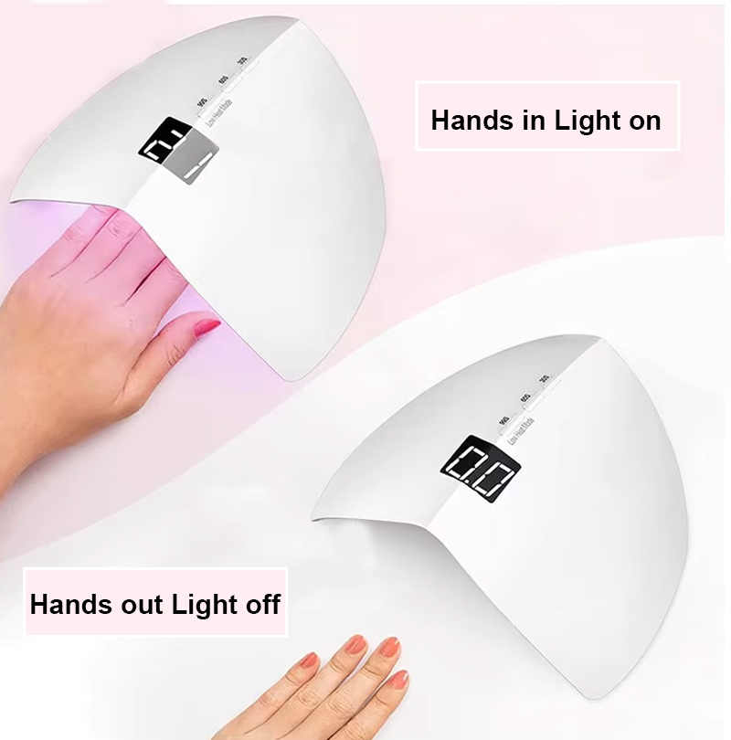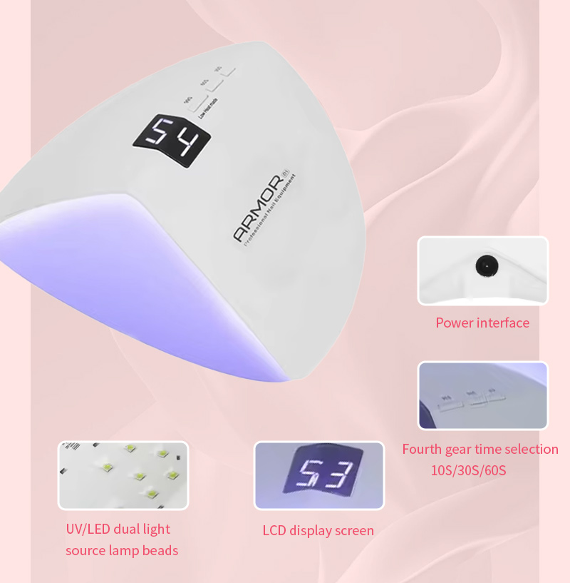 Το προϊόν εξασφαλίζει ομοιόμορφο στέγνωμα κόλλας χωρίς συρρίκνωση. Οι διπλές πηγές φωτός του παρέχουν απαλή θέρμανση για να αποτρέψουν τον αποχρωματισμό των χεριών και την καταπόνηση των ματιών, κατάλληλες τόσο για χέρια όσο και για πόδια, προσφέροντας εξαιρετικά γρήγορα αποτελέσματα στεγνώματος.