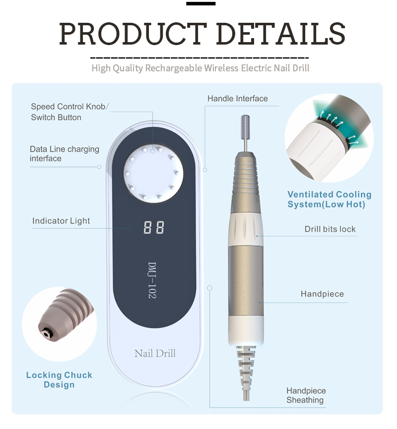 DMJ-102 Υψηλής ταχύτητας 35.000 rpm Ηλεκτρικό αρχείο νυχιών για πολωνική αφαίρεση: Χαρακτηριστικά και εφαρμογές