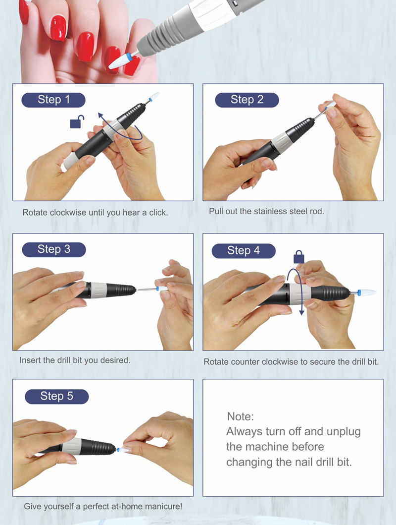Φορητό Σετ τρυπάνια νυχιών Ηλεκτρικό Με Ισχυρό Μοτέρ 65w 35000rpm
