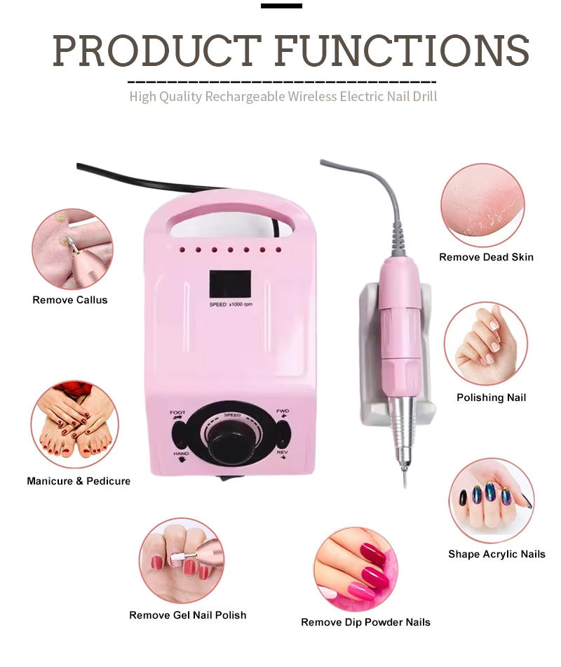 Φορητό Σετ τρυπάνια νυχιών Ηλεκτρικό Με Ισχυρό Μοτέρ 65w 35000rpm