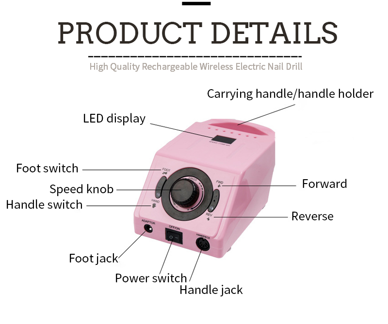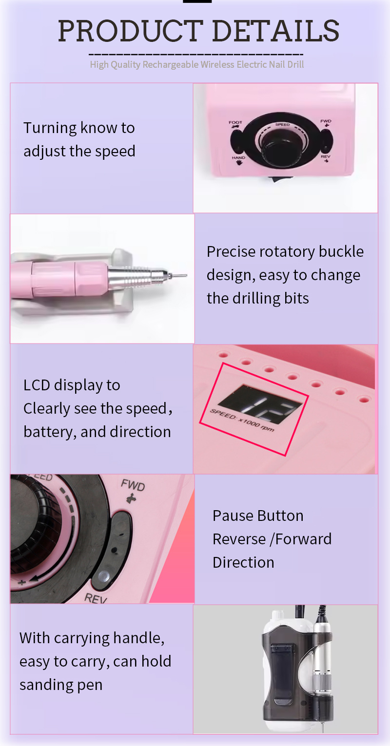Φορητό Σετ τρυπάνια νυχιών Ηλεκτρικό Με Ισχυρό Μοτέρ 65w 35000rpm
