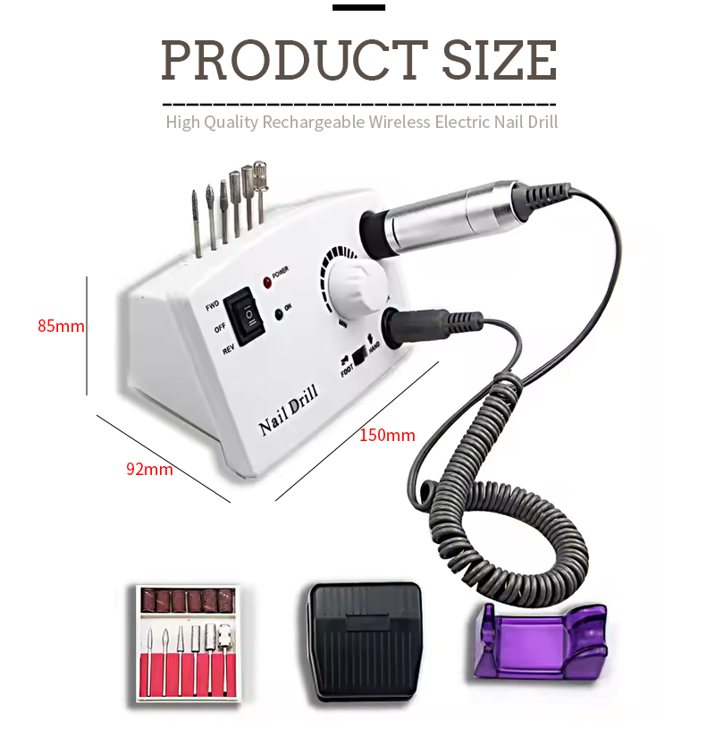 Φορητό Σετ τρυπάνια νυχιών Ηλεκτρικό Με Ισχυρό Μοτέρ 65w 35000rpm