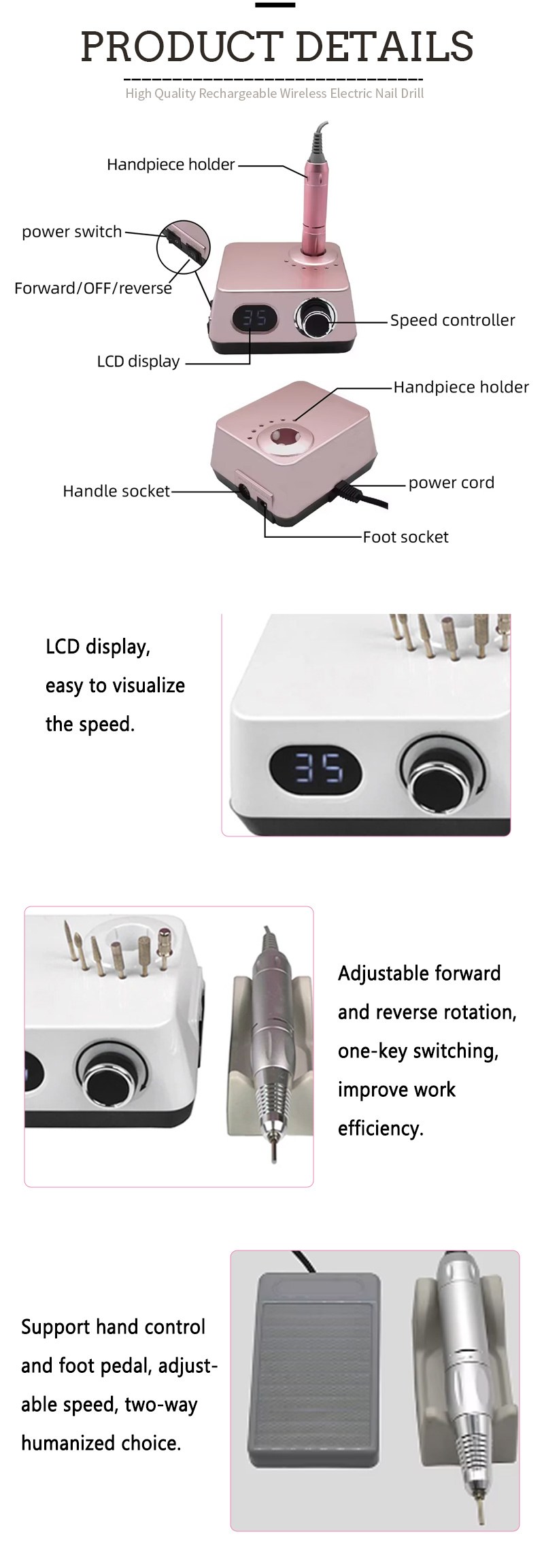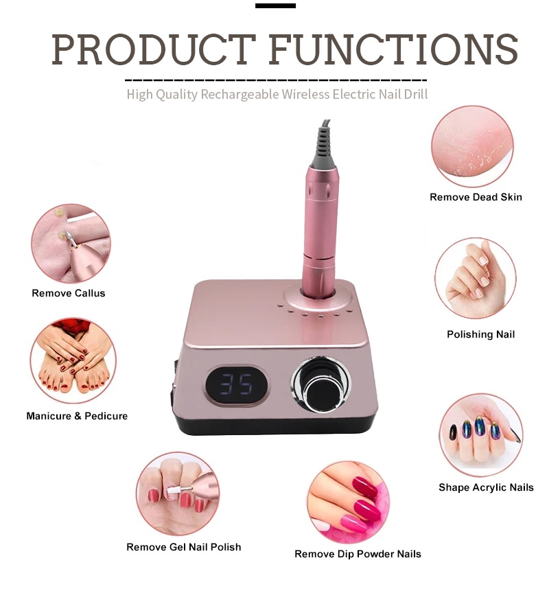 | Ασύρματο ηλεκτρικό τρυπάνι νυχιών με λεπτομέρειες 35.000 RPM |